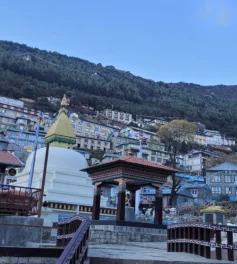 Here we are at Namche- the land of blue-roofed houses where we have everything from banks, cafes, and ATMs to bustling markets.