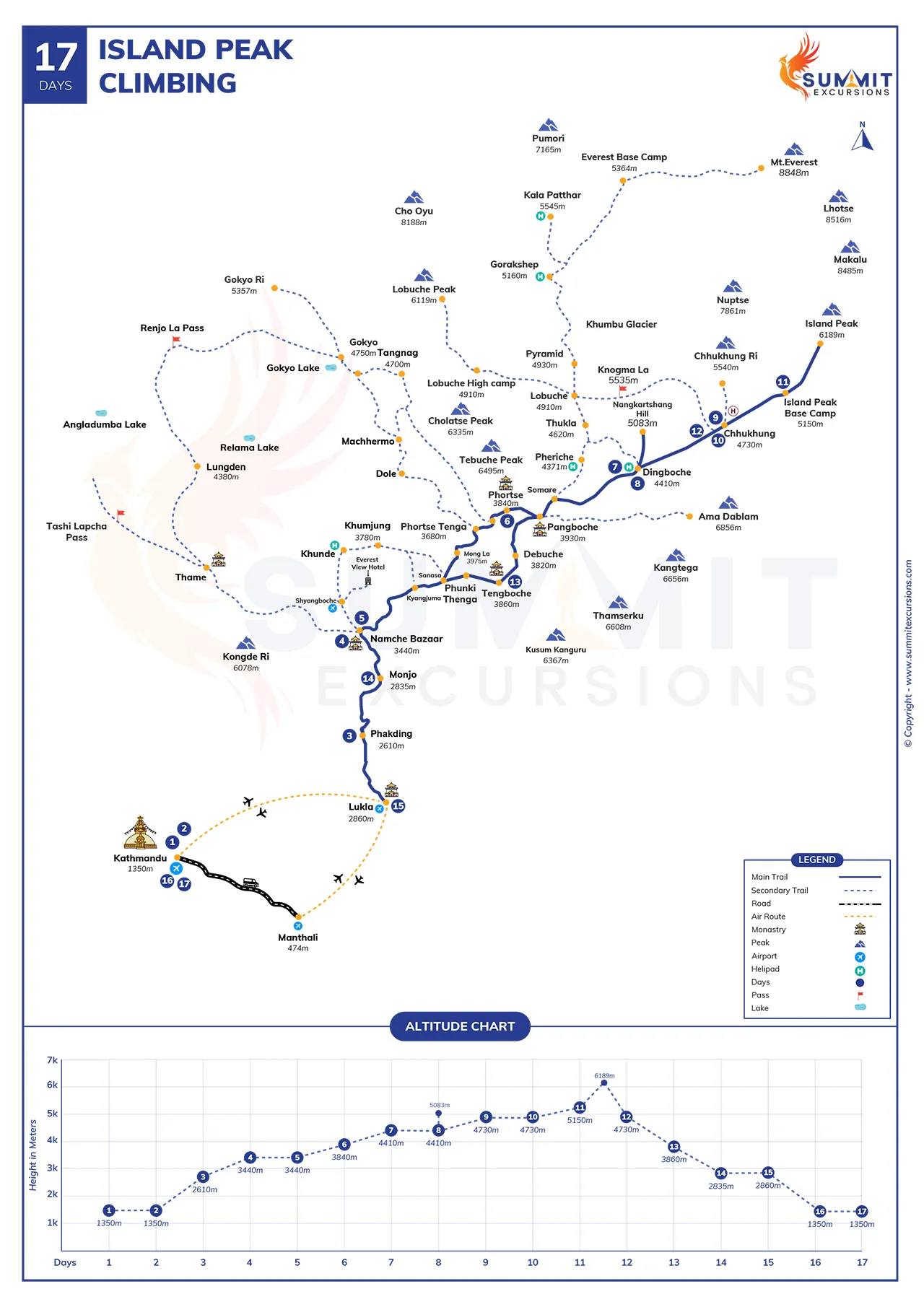 - Passing through rhododendron forests, monasteries, and scenic valleys, culminating in the unforgettable summit of Island Peak