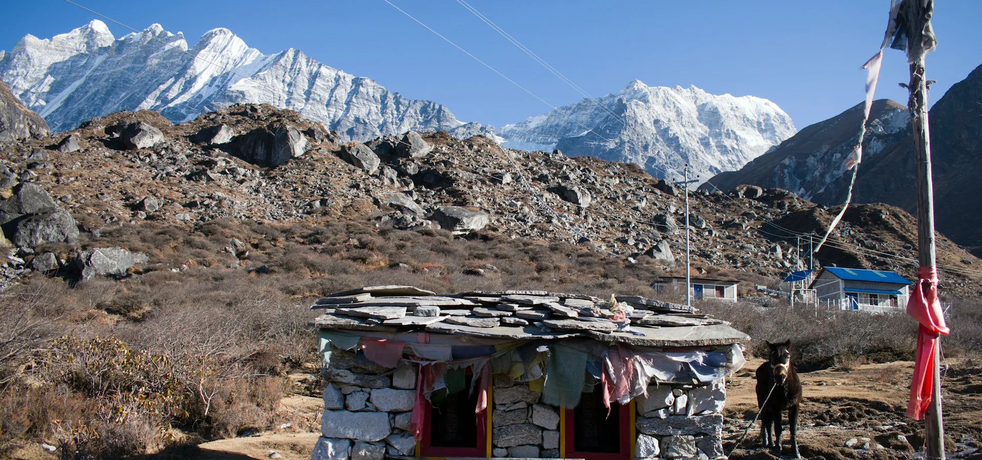 Now the climbing track, quite demanding, will take us among the juniper, tiny irises, and other flowers towards Ghora Tabela (3000 m). Following this, we will walk down to Thangshyap and Ghumba before making another ascent to reach Langtang Village traversing Chyamki.
