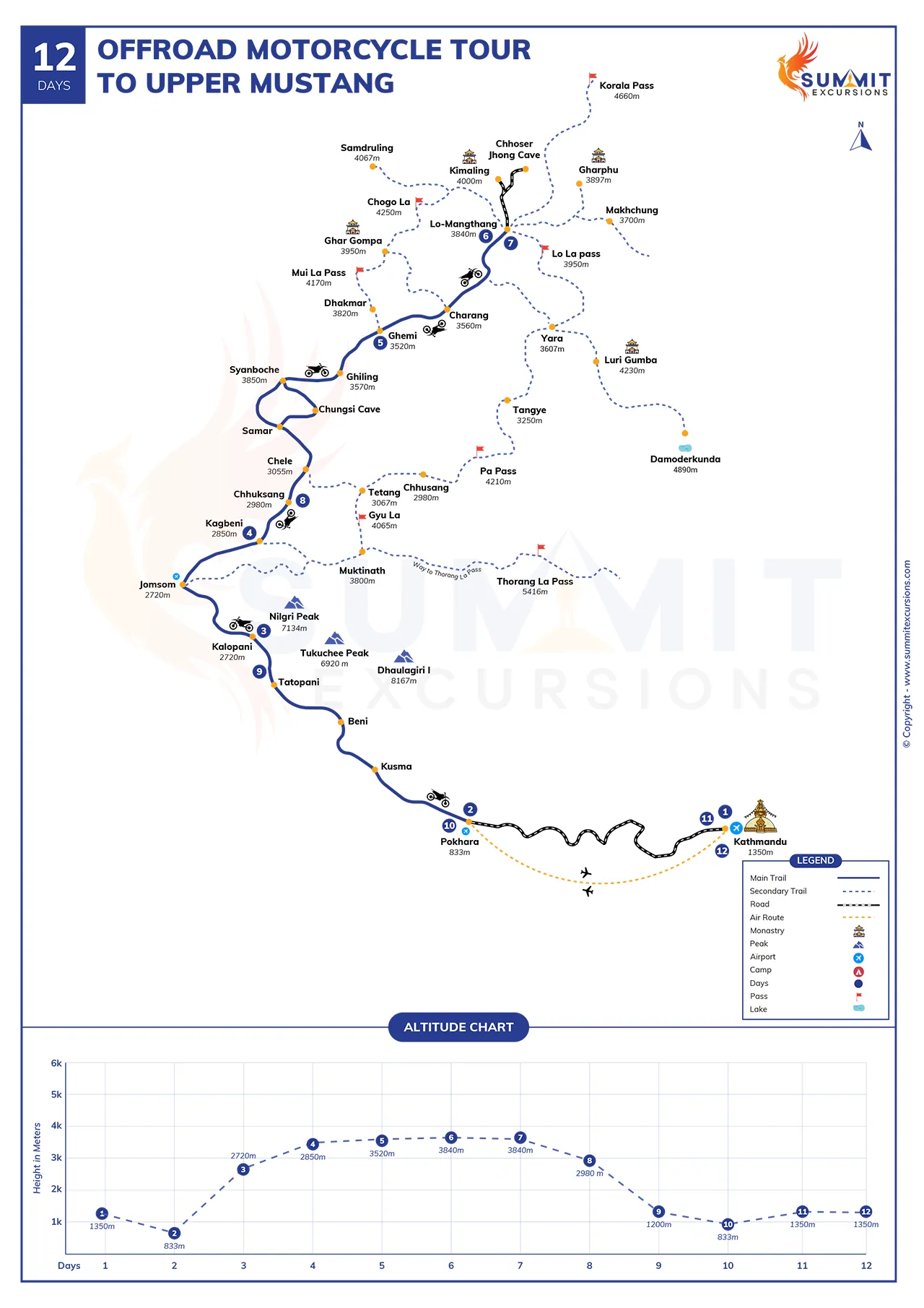 Offroad Motorcycle Tour to Upper Mustang Detail Itinerary
