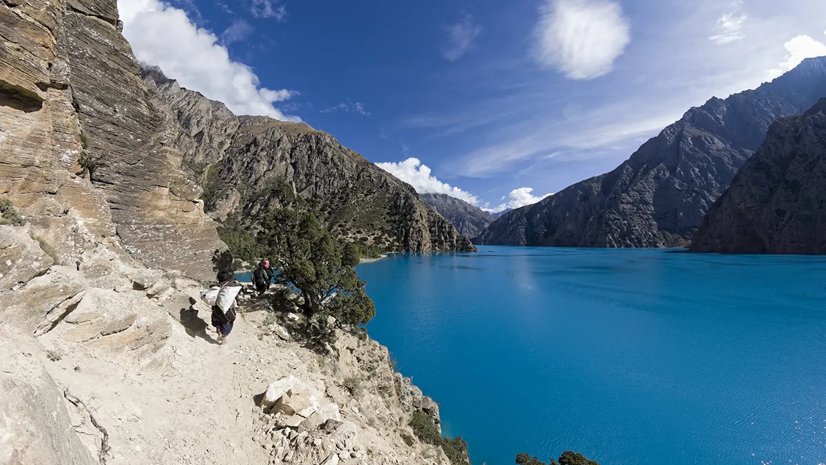 With a very fresh morning, we will continue our journey with the route above the western shores of Phoksundo Lake. At this point, you are already in the remote part of Nepal or the Himalayas. And from here the journey also gets tougher as the trail gets rough, steep, and stony. Through the difficult route, we will get there in the valley and a river, which is Phoksundo Khola.